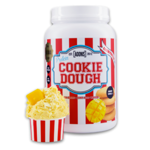 One of the most popular lines from Adonis is their Protein Cookie Dough (casein-based) concept—built to feel like a dessert while fitting better into a training lifestyle (high protein, controlled carbs/fat per serving depending on flavor).